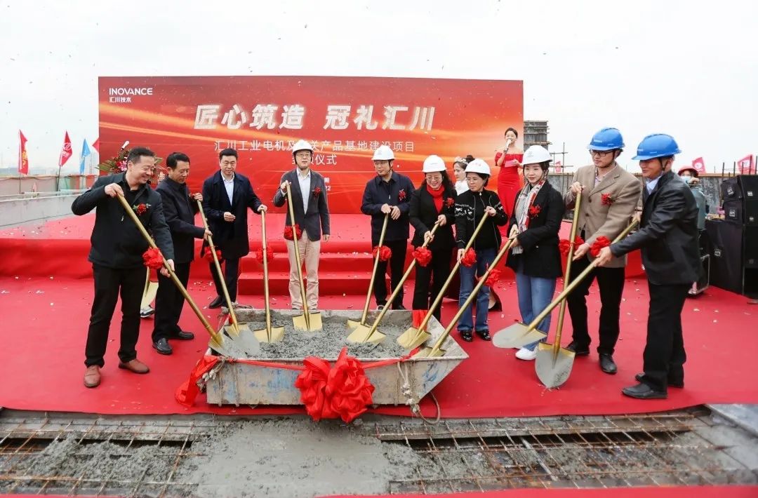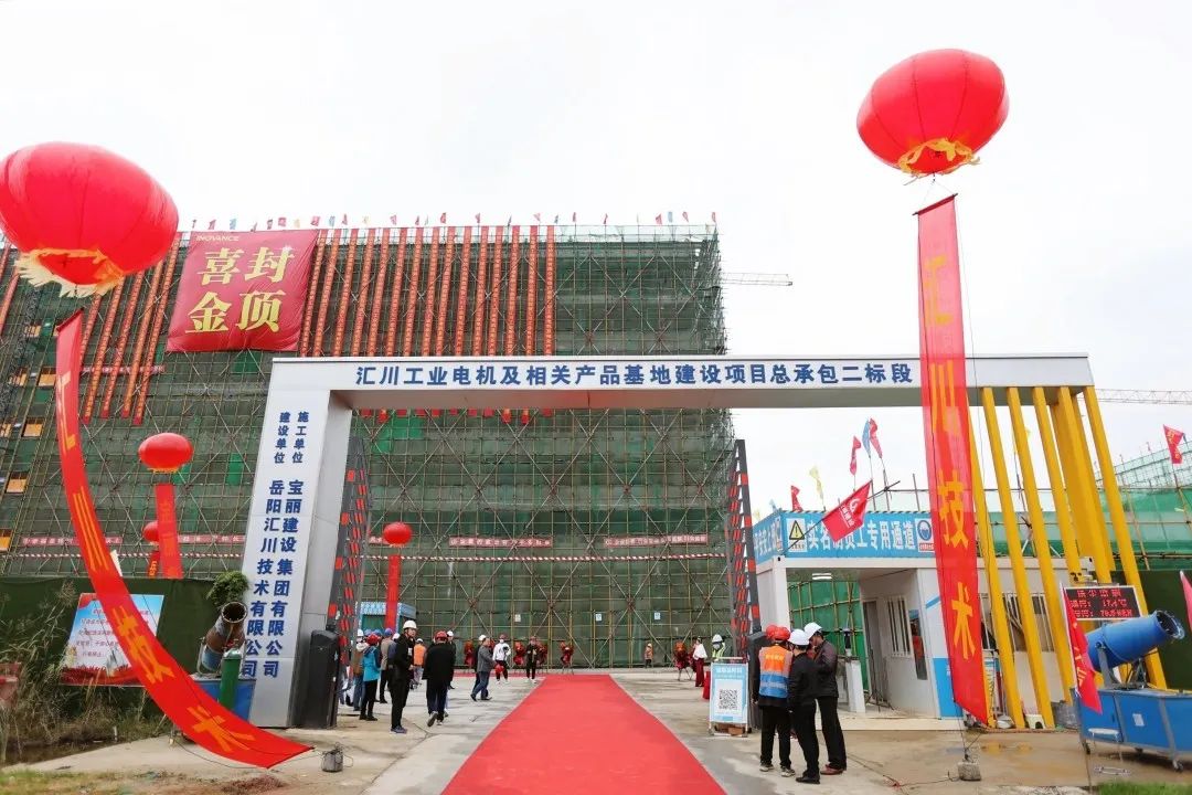 匯川技術岳陽伺服電機生產基地封頂儀式現(xiàn)場。
