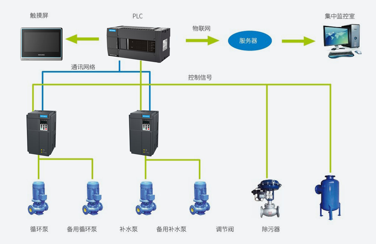 通過PLC對溫度壓力的采集,對二次網回水溫度的控制,實現換熱機組的高效化運行。采用智能物聯網控制系統實現對各換熱機組的遠程監控。
