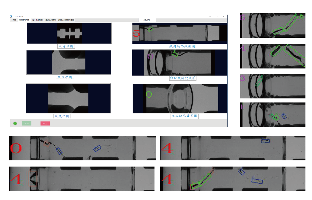 制瓶機為玻璃瓶生產核心設備,該設備廣泛用于醫藥、食品領域。玻璃燒制過程受溫度、濕度、原料、設備異常的影響,成型后的玻璃瓶會出現氣泡、結石、黑點、裂紋、氣線、磕碰、臟污等缺陷,我司針對此領域推出了基于深度學習的空瓶缺陷檢測方案,該方案作業便捷,調試、換型時間短,檢測效率高,有效降低不良品外流。